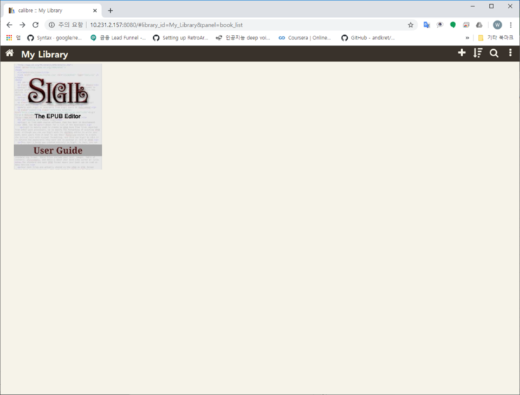 브라우저에서 서버 주소로 서재에 들어갑니다.