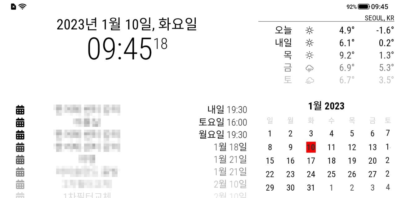 시계와 날씨, 그리고 구글 캘린더와 연동해 일정을 볼 수 있게 했고, 달력도 표시했지요.