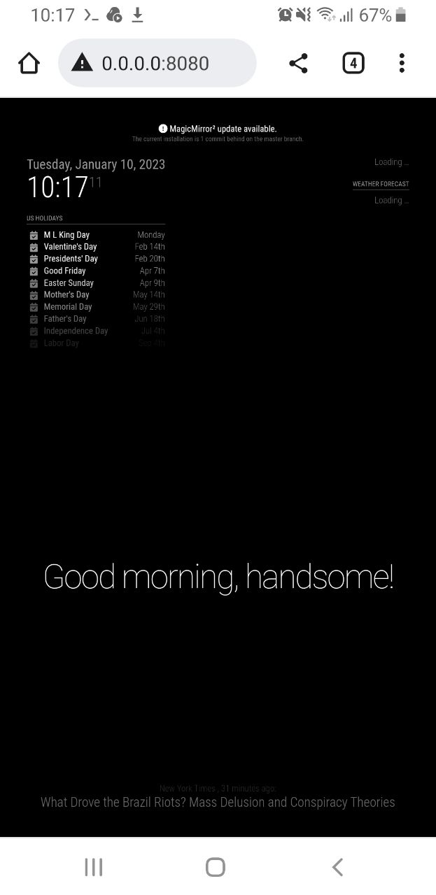 스마트폰/태블릿을 스마트 달력으로 만들기 위해 MagicMirror 라는 프로그램을 사용합니다.